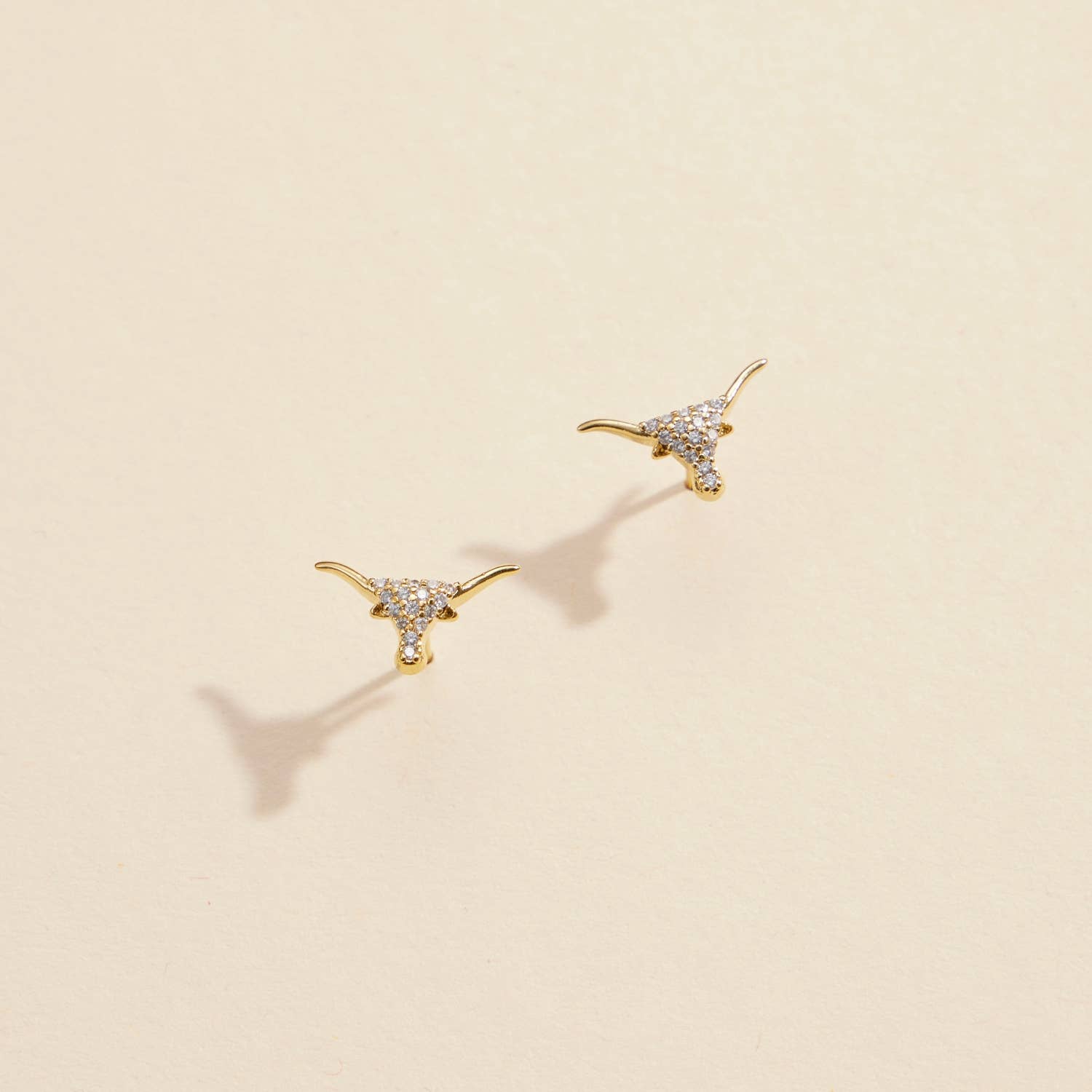 Add a subtle touch of elegance to your outfit with our minimalistic Bull Head CZ Gold Dip Stud Earrings. Featuring a sleek bull head design encrusted with sparkling CZ stones, these earrings are perfect for adding a touch of glamour to any occasion. Made from high-quality materials, they are durable and trendy.